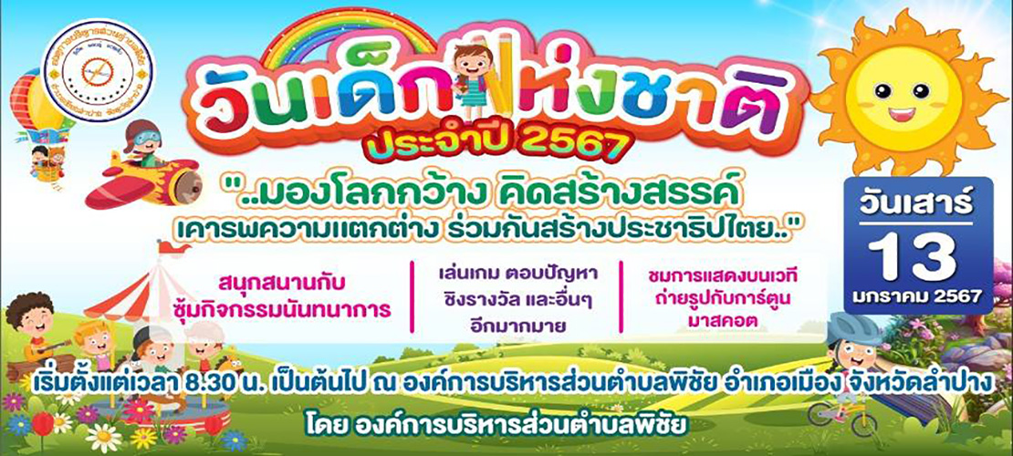 องค์การบริหารส่วนตำบลพิชัย มีกำหนดการจัดกิจกรรมวันเด็กแห่งชาติ ประจำปี 2567