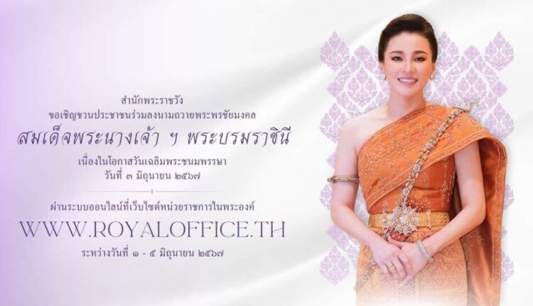ขอเชิญชวนประชาชนร่วมลงนามถวายพระพรชัยมงคล สมเด็จพระนางเจ้า ฯ พระบรมราชินี เนื่องในโอกาสวันเฉลิมพระชนมพรรษา
