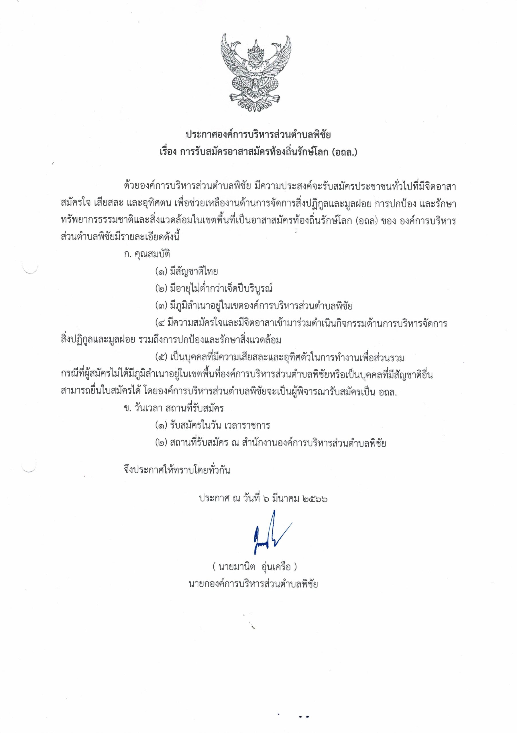 • ประชาสัมพันธ์รับสมัคร อาสาสมัครท้องถิ่นรักษ์โลก