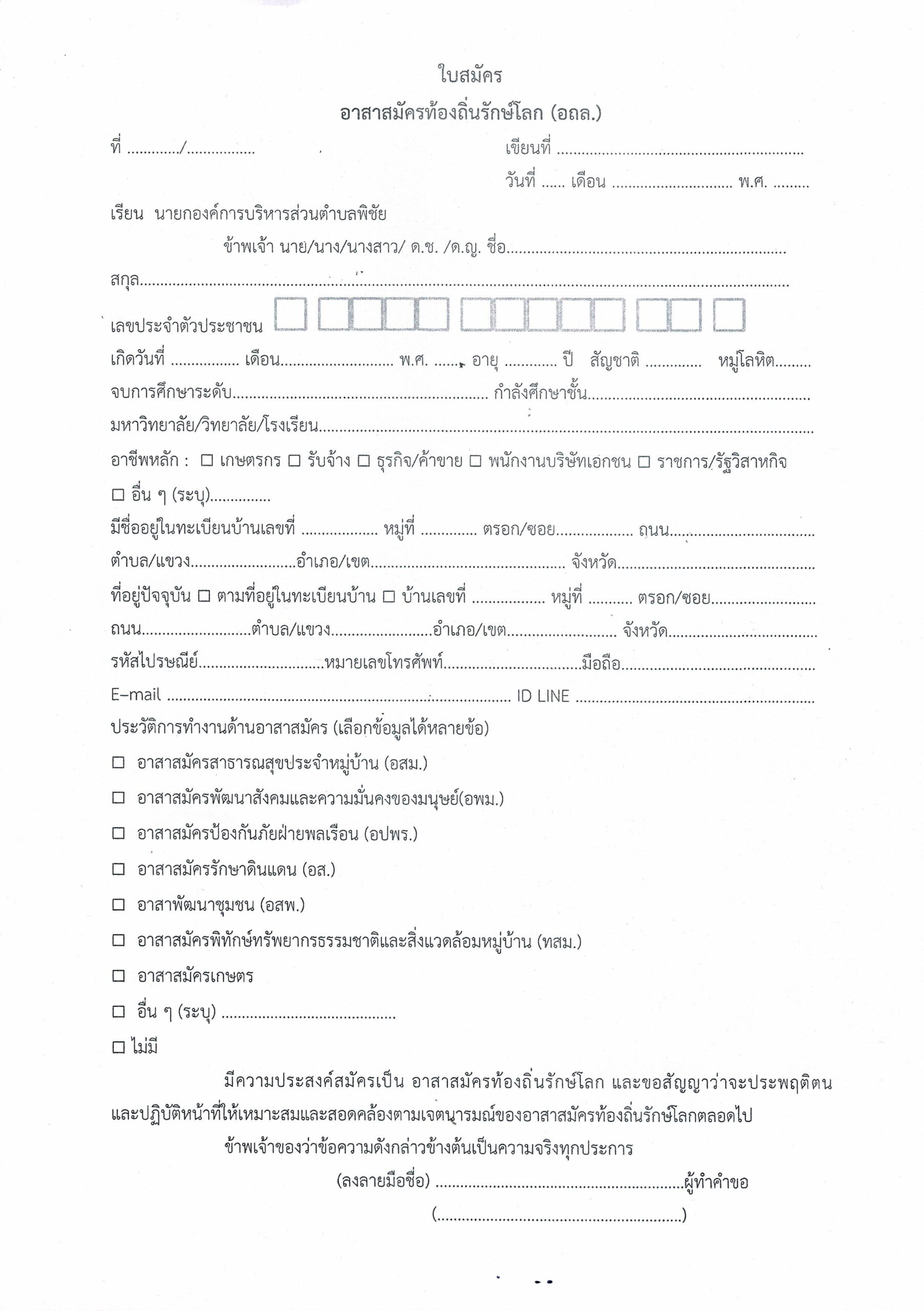 ใบสมัครอาสาสมัครท้องถิ่นรักษ์โลก (อถล.) โดย admin วันที่ มี.ค. 10, 2023 Share FacebookTwitterGoogle+ReddItWhatsAppPinterestEmail