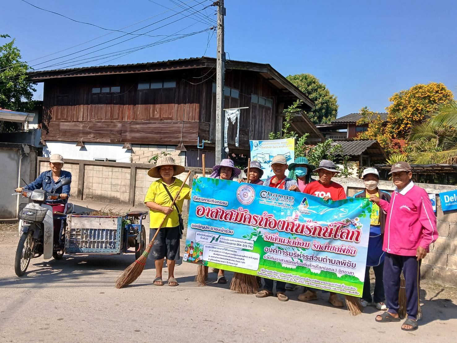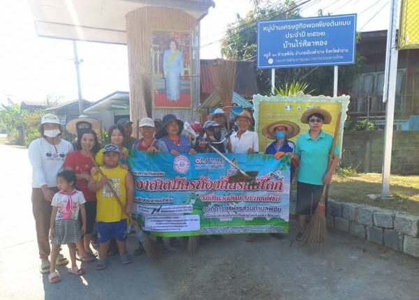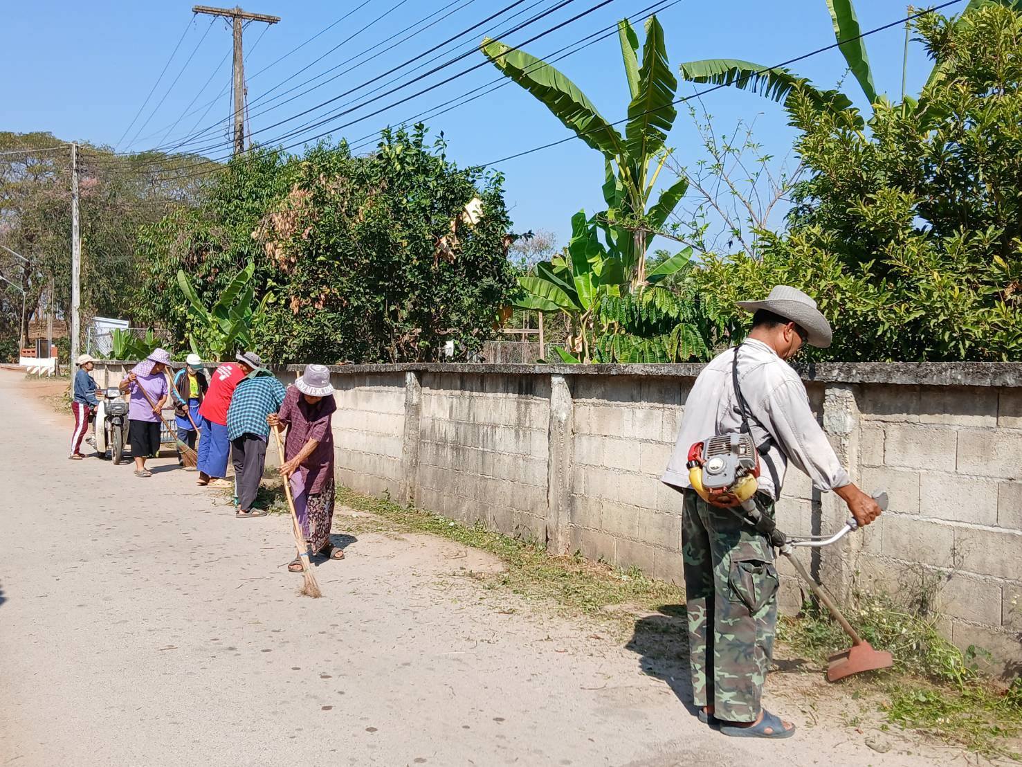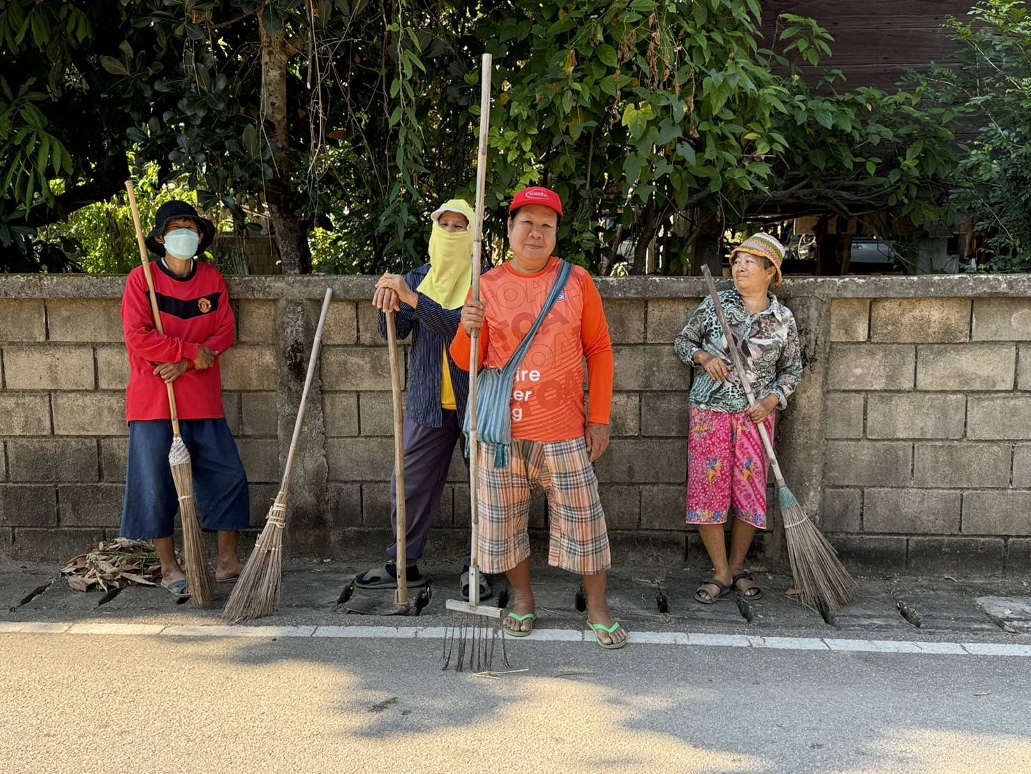 อาสาสมัครท้องถิ่นรักษ์โลก (อถล.) บ้านไร่ศิลาทอง ร่วมใจกันพัฒนาหมู่บ้าน เก็บกวาด ถนนเพื่อลดโลกร้อนและน่าดูน่ามอง