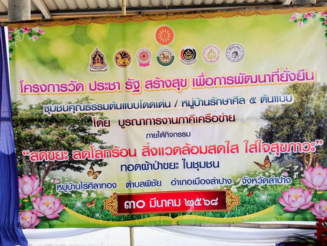 วันที่ 30 มีนาคม 2568 องค์การบริหารส่วนตำบลพิชัย เข้าร่วมกิจกรรม ตามโครงการวัด ประชา รัฐ สร้างสุข เพื่อการพัฒนาที่ยั่งยืน (บวร) มีภาคีเครือข่าย หลายภาคส่วนได้แก่ อาสาสมัครท้องถิ่นรักษ์โลก (อถล.) วัดไร่ศิลาทอง มหาวิทยาลัยเทคโนโลยีราชมงคลล้านนาลำปาง องค์การบริหารส่วนตำบลพิชัย ผู้นำชุมชน พัฒนาชุมชน อำเภอเมืองลำปาง เด็ก เยาวชน และประชาชนบ้านไร่ศิลาทอง ได้ร่วม ทอดผ้าป่าขยะ เดินรณรงค์ แจกแผ่นพับประชาสัมพันธ์ ให้ความรู้การบริหารจัดการขยะแต่ละประเภท การจัดตั้งธนาคาร สาธิตการคัดแยกขยะอย่างไรให้ได้ราคา โดยนายมานิต อุ่นเครือ นายกองค์การบริหารส่วนตำบลพิชัย ได้มอบหม้อดินกินน้ำแกง ซึ่งได้รับการสนับสนุนจากมหาวิทยาลัยเทคโนโลยีราชมงคลล้านนาลำปาง เพื่อมอบให้ประชาชน เป็นไปตามนโยบาย โครงการการส่งเสริมการคัดแยกขยะในชุมชน / สถานประกอบการ ประจำปีงบประมาณ 2568 ขององค์การบริหารส่วนตำบลพิชัย และ “ จังหวัดสะอาด ”