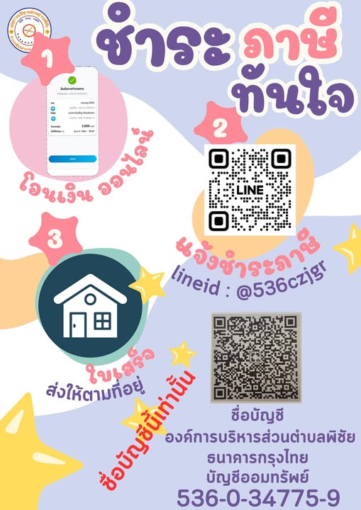 ประชาสัมพันธ์ชำระภาษีทันใจ โดย อบต.พิชัย จนท. วันที่ พ.ค. 2, 2025 สะดวก รวดเร็ว ขอบคุณท่านที่ชำระภาษีองค์การบริหารส่วนตำบลพิชัย ง่าย ๆ อยู่บ้านหรือไม่สะดวกเดินทางมา ก็โอนชำระภาษี ผ่านบัญชีธนาคารกรุงไทย ชื่อบัญชี องค์การบริหารส่วนตำบลพิชัย เลขที่บัญชี 536-0-34775-9 จากนั้นโทรแจ้งหรือติดต่อตามช่องทางนี้ (ใบเสร็จรับเงิน จะถูกจัดส่งไปยังที่อยู่ของท่านค่ะ) ช่องทางการติดต่อ Line แจ้งชำระภาษี @536czjgr โทรศัพท์ แจ้งเจ้าหน้าที่ 054-315-742 ต่อ 14 (สายตรง) ภาษีองค์การบริหารส่วนตำบลพิชัย Share FacebookTwitterGoogle+ReddItWhatsAppPinterestEmail