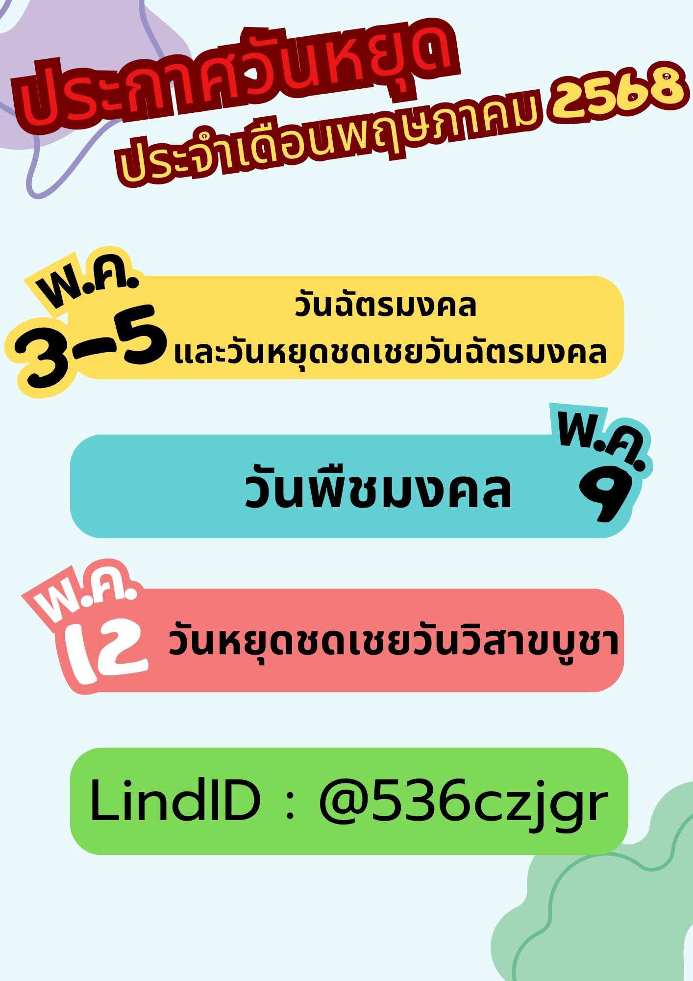 ปิดทำการ 3-5 พฤษภาคม 2568
