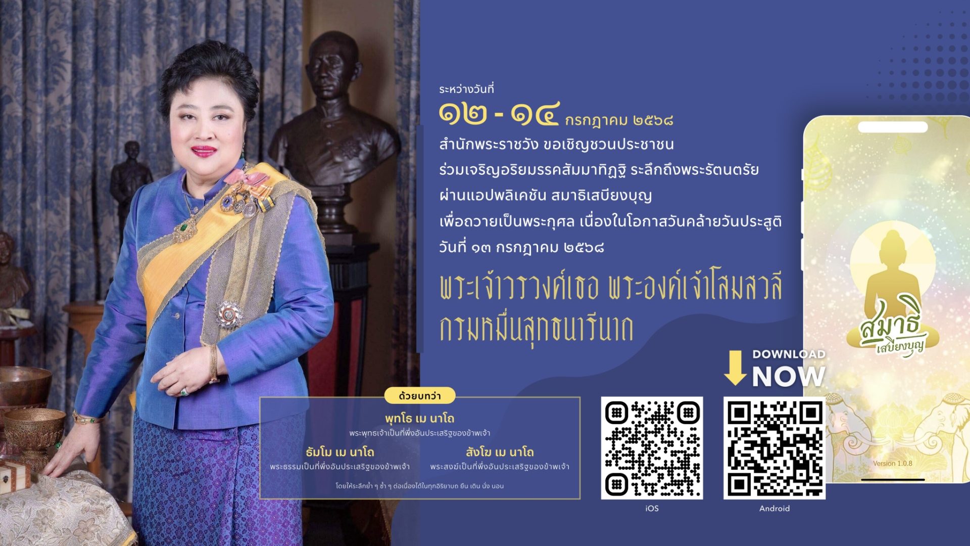 สำนักพระราชวัง ขอเชิญชวนประชาชนร่วมเจริญอริยมรรค “สัมมาทิฏฐิ” ระลึกถึงพระรัตนตรัย ว่าเป็นสรณะที่พึ่งที่ยึดถือ อันเป็นทางเป็นธรรมที่พระพุทธองค์ได้ตรัสไว้โดยชอบ เพื่อถวายเป็นพระกุศลแด่พระเจ้าวรวงศ์เธอ พระองค์เจ้าโสมสวลี กรมหมื่นสุทธนารีนาถ วันที่ ๑๓ กรกฏาคม ๒๕๖๘ ผ่านแอปพลิเคชัน “สมาธิเสบียงบุญ” โดย อบต.พิชัย จนท. วันที่ ก.ค. 8, 2025 สำนักพระราชวัง ขอเชิญชวนประชาชนร่วมเจริญอริยมรรค “สัมมาทิฏฐิ” ระลึกถึงพระรัตนตรัย ด้วยบทว่า พุทโธ เม นาโถ (พระพุทธเจ้าเป็นที่พึ่งอันประเสริฐของข้าพเจ้า) ธัมโม เม นาโถ (พระธรรมเป็นที่พึ่งอันประเสริฐของข้าพเจ้า) สังโฆ เม นาโถ (พระสงฆ์เป็นที่พึ่งอันประเสริฐของข้าพเจ้า) (โดยให้ระลึกย้ำ ๆ ซ้ำ ๆ ต่อเนื่องได้ในทุกอิริยาบถ ยืน เดิน นั่ง นอน) ถวายเป็นพระกุศลเนื่องในโอกาสวันคล้ายวันประสูติ พระเจ้าวรวงศ์เธอ พระองค์เจ้าโสมสวลี กรมหมื่นสุทธนารีนาถ วันที่ ๑๓ กรกฏาคม ๒๕๖๘ ระหว่างวันที่ ๑๒ กรกฏาคม ๒๕๖๘ เวลา ๐๘.๐๐ น. ถึง วันที่ ๑๔ กรกฏาคม ๒๕๖๘ เวลา ๐๘.๐๐ น. ผ่านแอปพลิเคชัน “สมาธิเสบียงบุญ” ทั้งนี้สามารถดาวน์โหลดแอปพลิเคชันได้ทั้ง PLAY STORE และ APP STORE Share FacebookTwitterGoogle+ReddItWhatsAppPinterestEmail