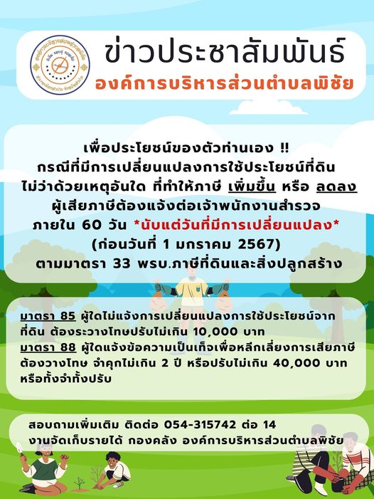 กรณีที่มีการเปลี่ยนแปลงการใช้ประโยชน์ที่ดิน ผู้เสียภาษีต้องแจ้งต่อเจ้าพนักงานสำรวจ ภายใน 60 วัน
